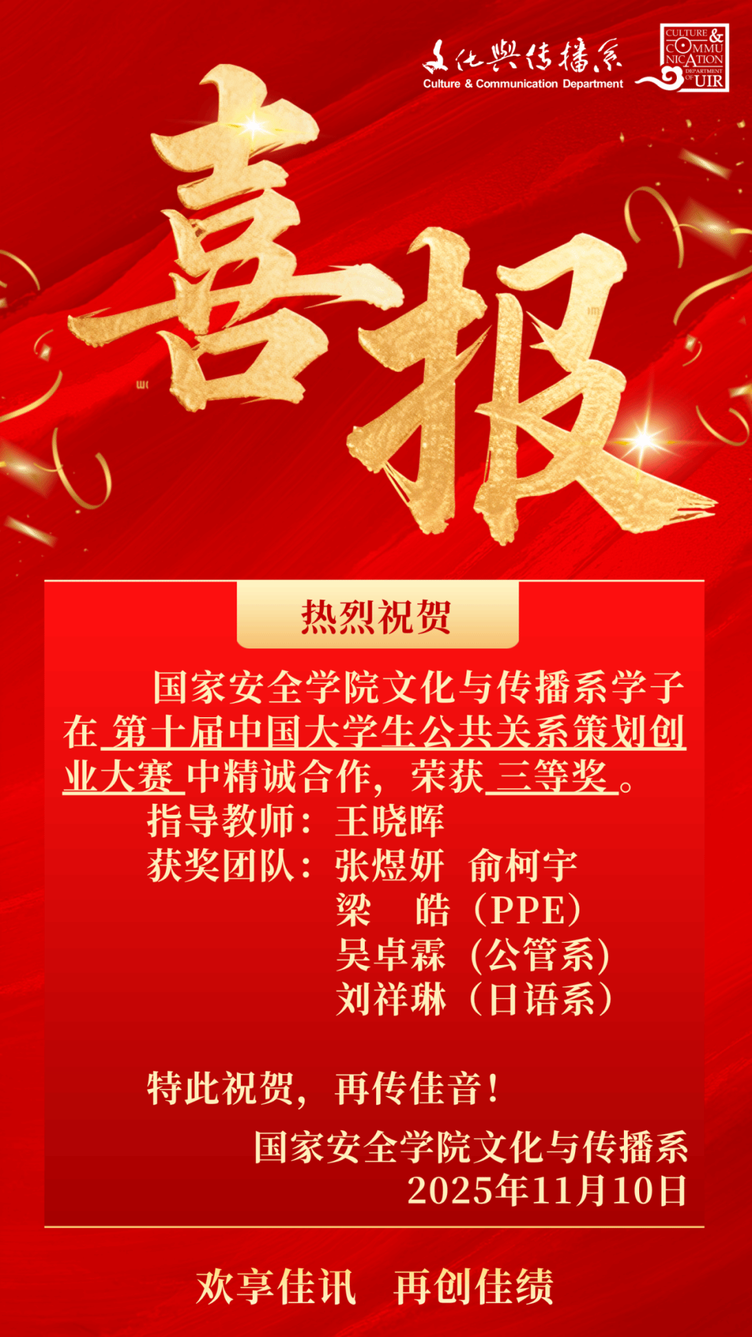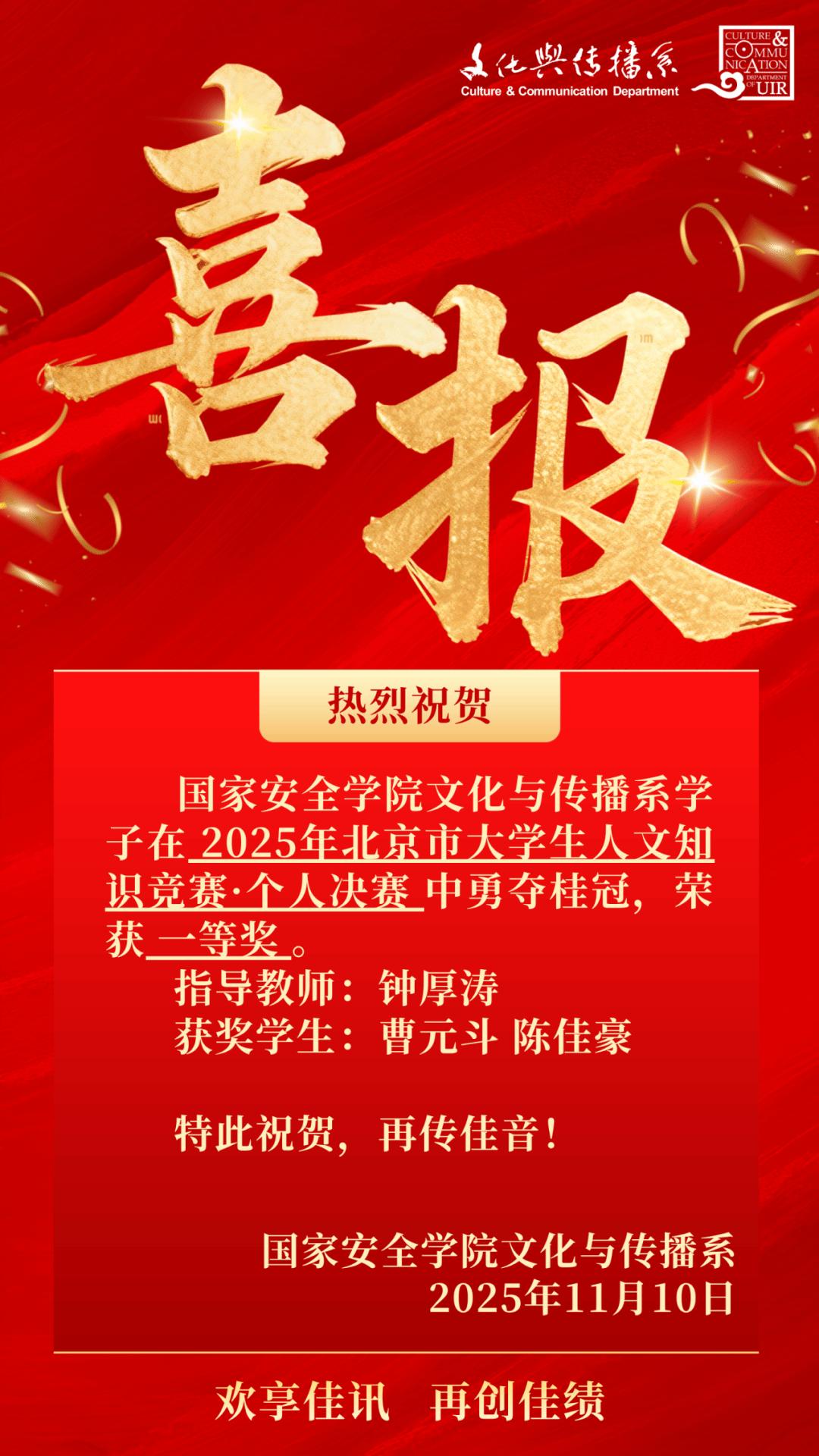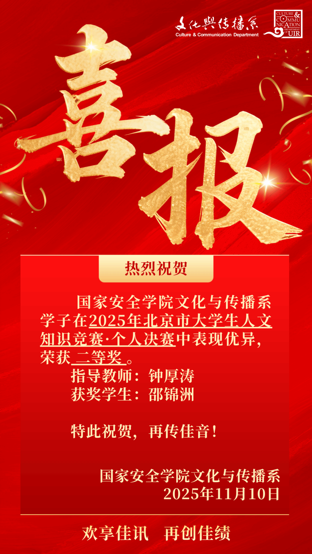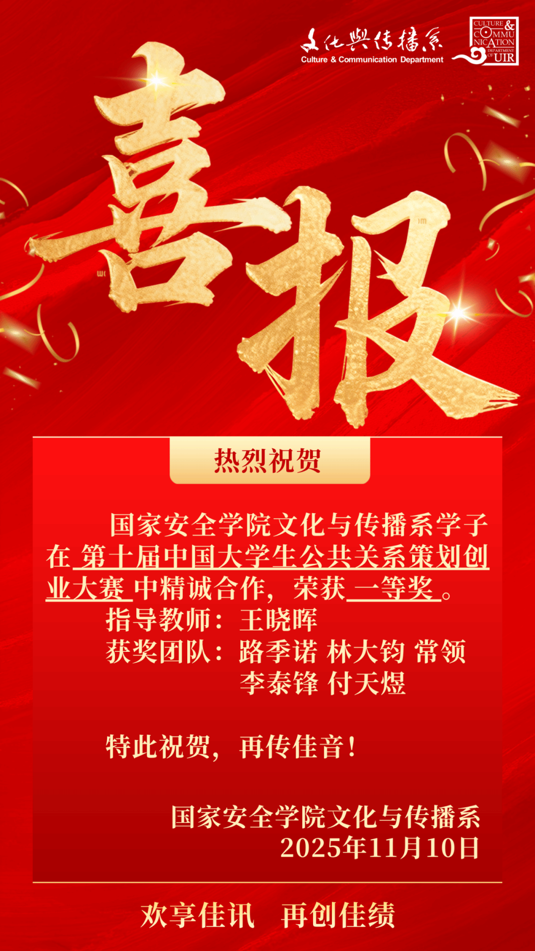 近期,我系学生在多项国家级和省部级高水平学科竞赛中奋勇争先,捷报频传,斩获了各类奖项,充分展现了我系学子扎实的专业功底、卓越的创新能力和全面的综合素养,为学校和文传系赢得了荣誉!