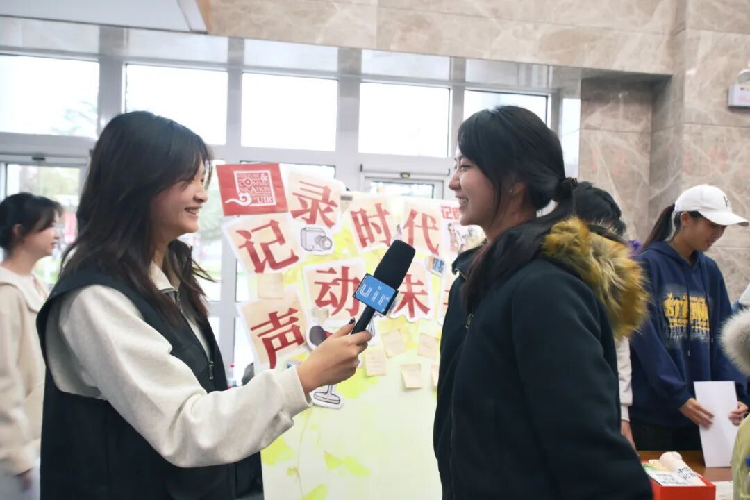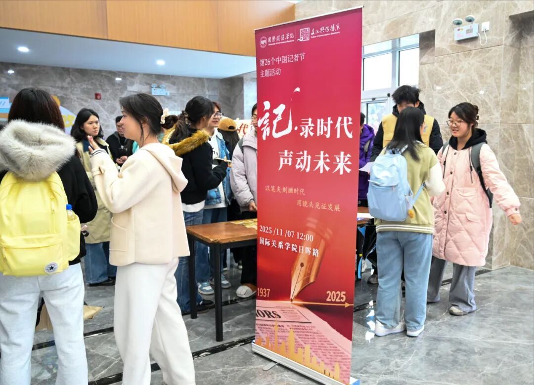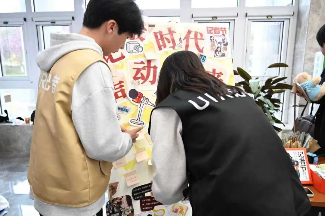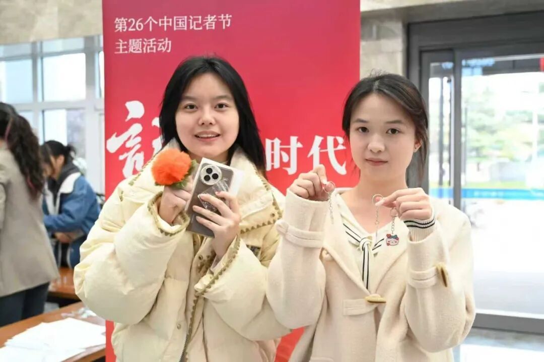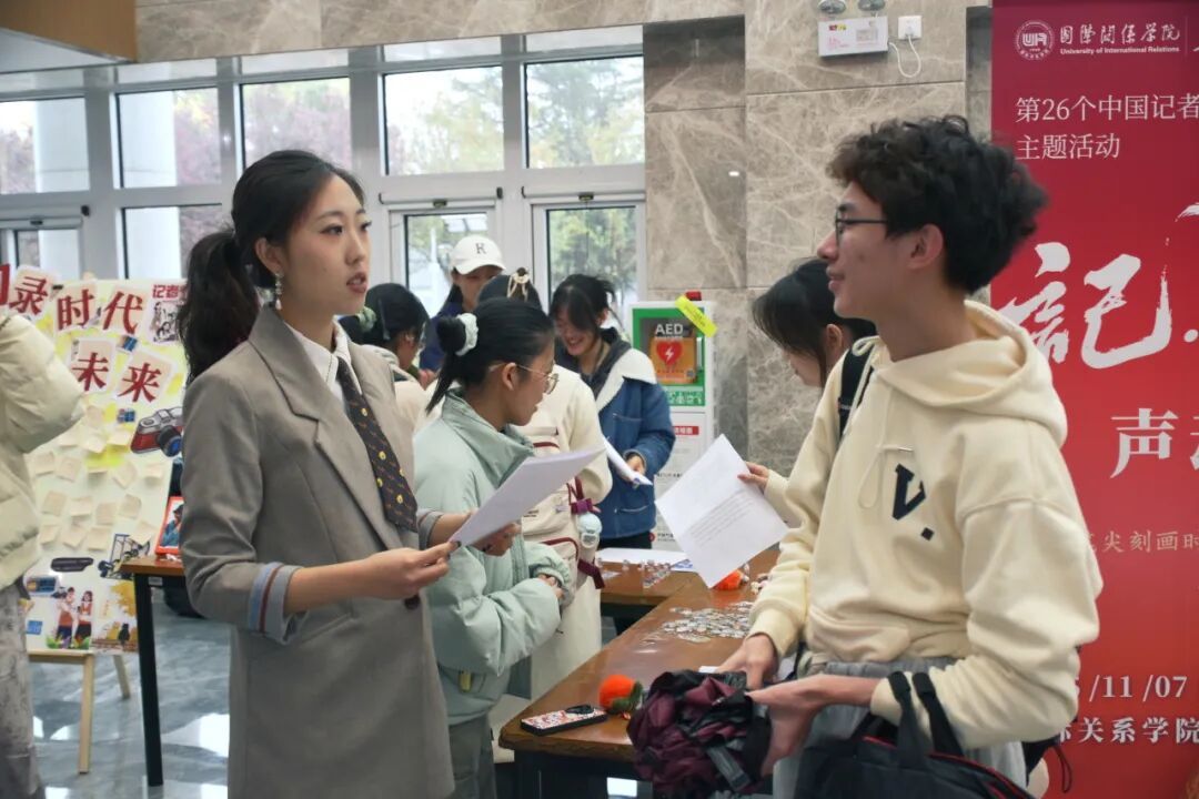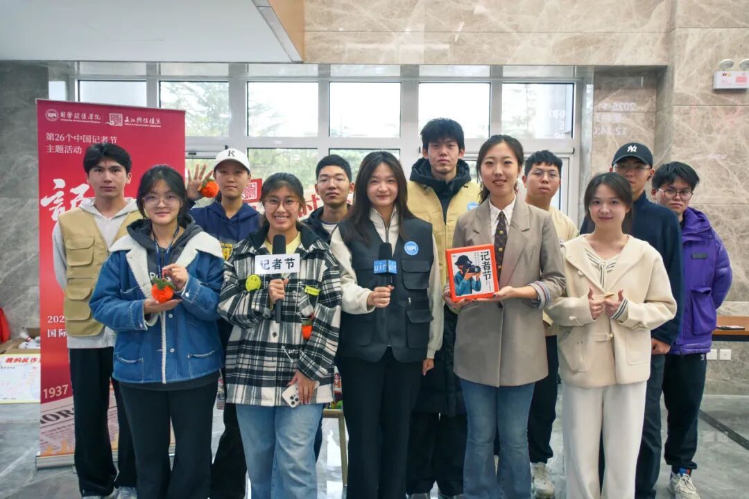 参与者佩戴印有“国关记者”标识的道具,手持融入校园元素的采访话筒,在镜头前定格职业向往,每一张合影都承载着对新闻职业的庄重期许。