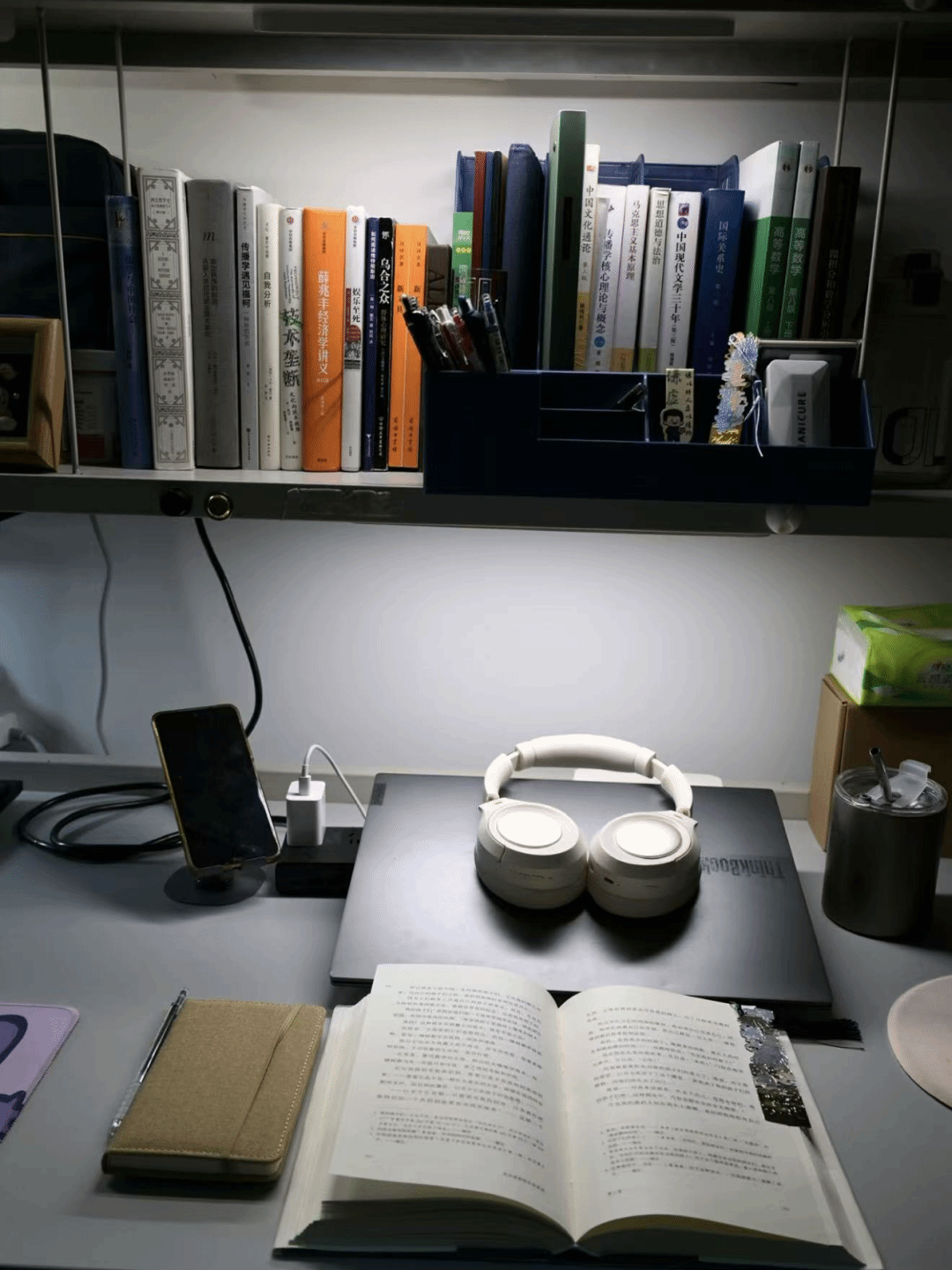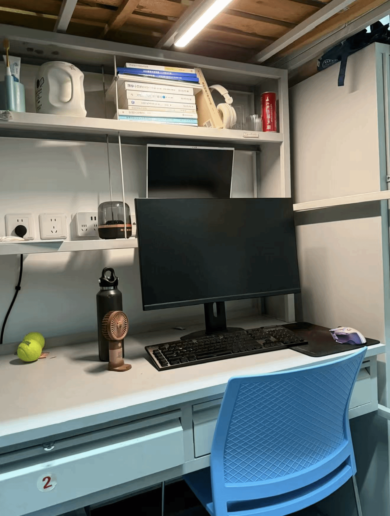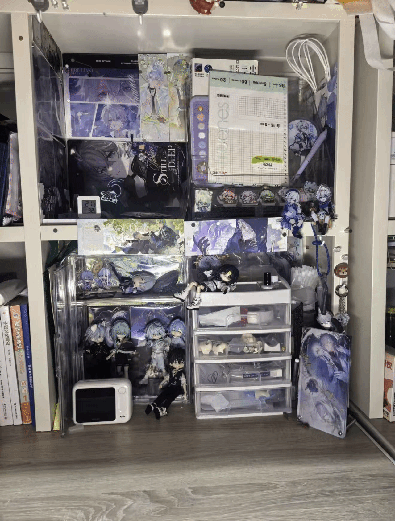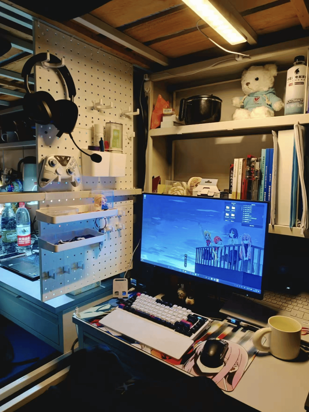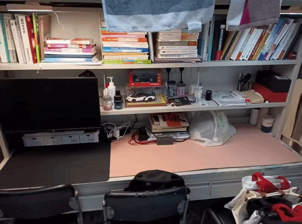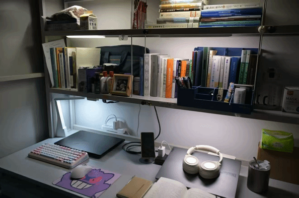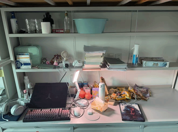 寝室书桌是青春的缩影:周边堆起热爱星河,电竞设备燃着热血,书籍铺展求知路,笔墨晕开文艺韵,方寸桌间,各藏风华。