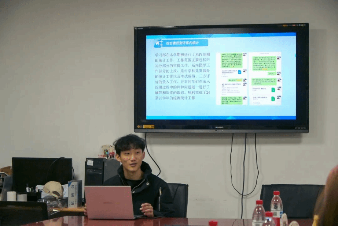 会上重点介绍了学生会的整体架构,包括办公室、组织部、学习部、宣传部、文体部、实践部等部门的基本职能与工作模式;并进一步结合各部门具体工作,系统展示了我系学生工作的多元内容与特色成果。